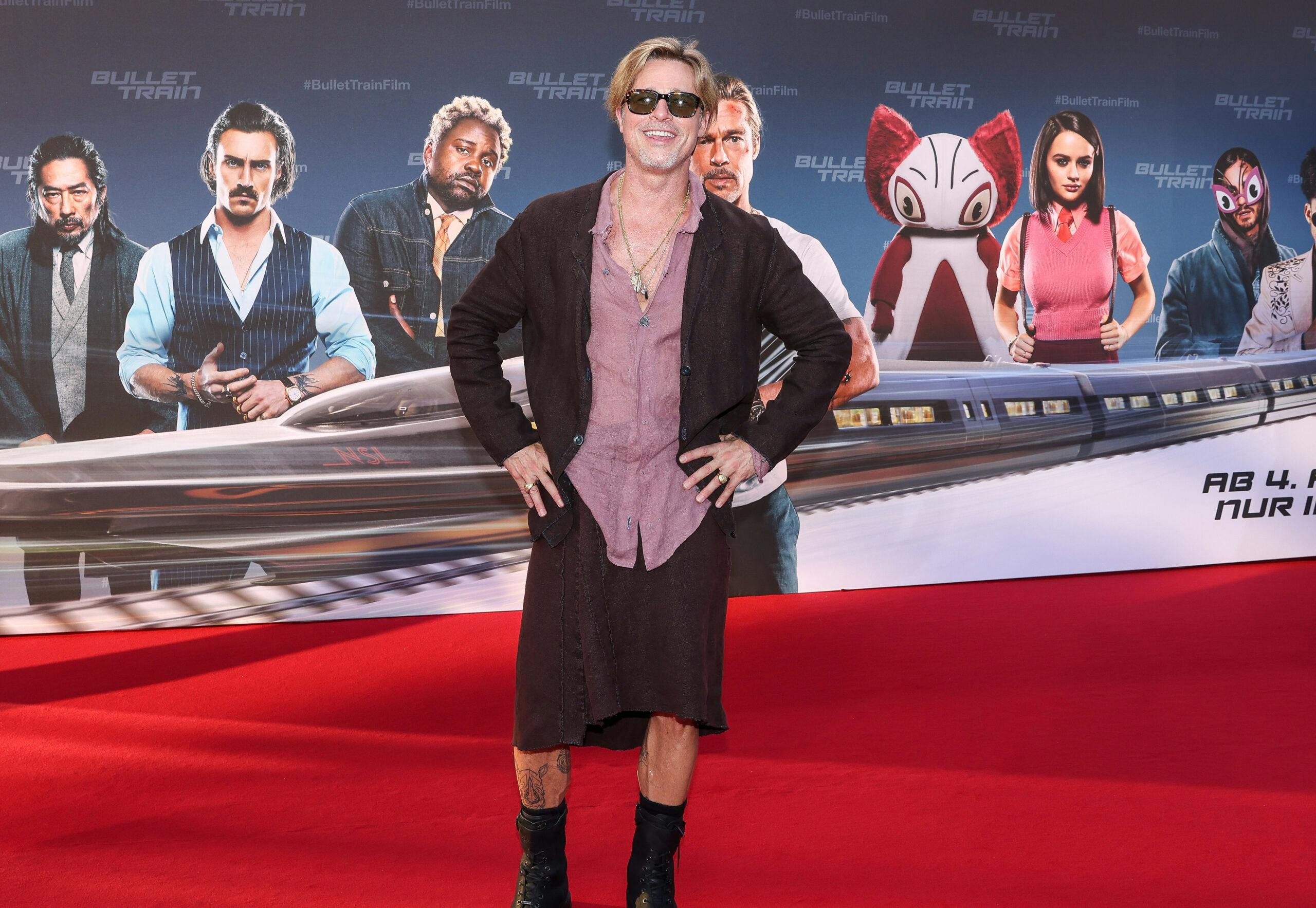 Brad Pitt turned some heads at the premiere of his latest film, “Bullet Train,” by donning a skirt for his red carpet appearance.
