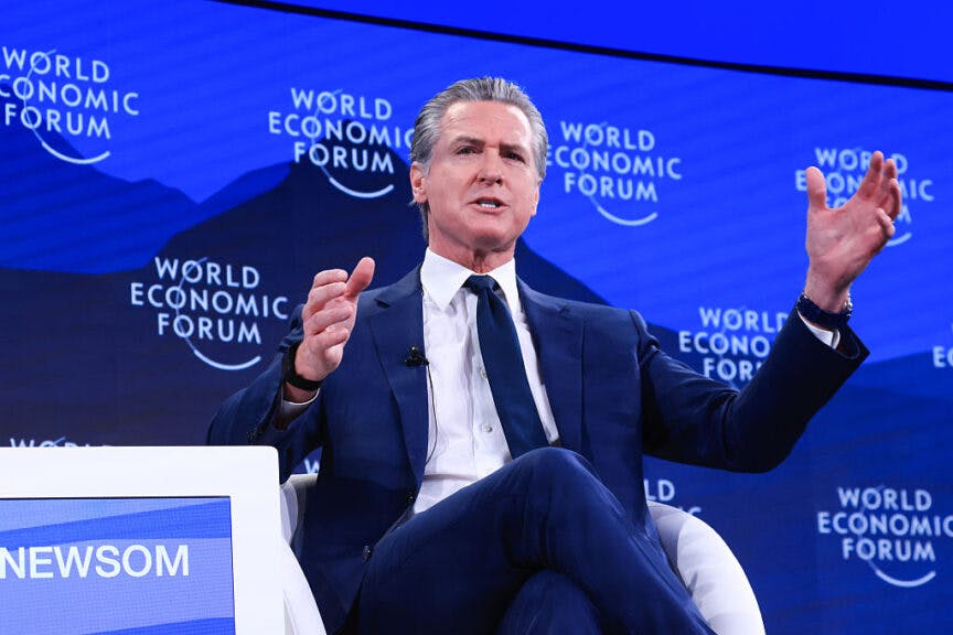 Gavin Newsom during the World Economic Forum (WEF) in Davos, Switzerland, on Thursday, Jan. 22, 2026. Photographer: Krisztian Bocsi/Bloomberg via Getty Images