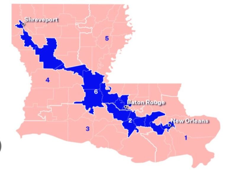 And then, once courts decide that a state doesn’t have enough majority-black districts, courts will order states to redraw their electoral maps, so that more majority-black districts would be created. A couple of years ago, that’s exactly what happened to the state of Louisiana. In 2022, the state drew a congressional map that had six districts, and only one of those districts was majority-black.