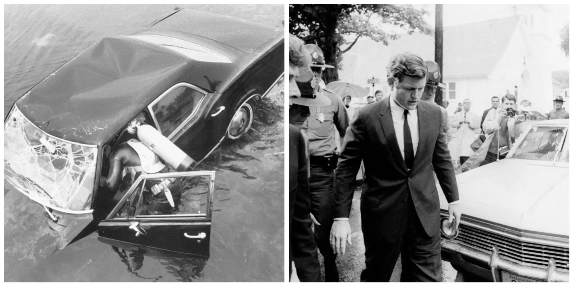 As Kennedy and the two men sat at the ferry landing, Farrell writes, Kennedy told them, “You take care of the girls,” referring to the other young women at the party. “I will take care of the accident.” He swam across the harbor, leaving the two men assuming he was heading to the police station or reporting the accident to someone so he could turn himself in.