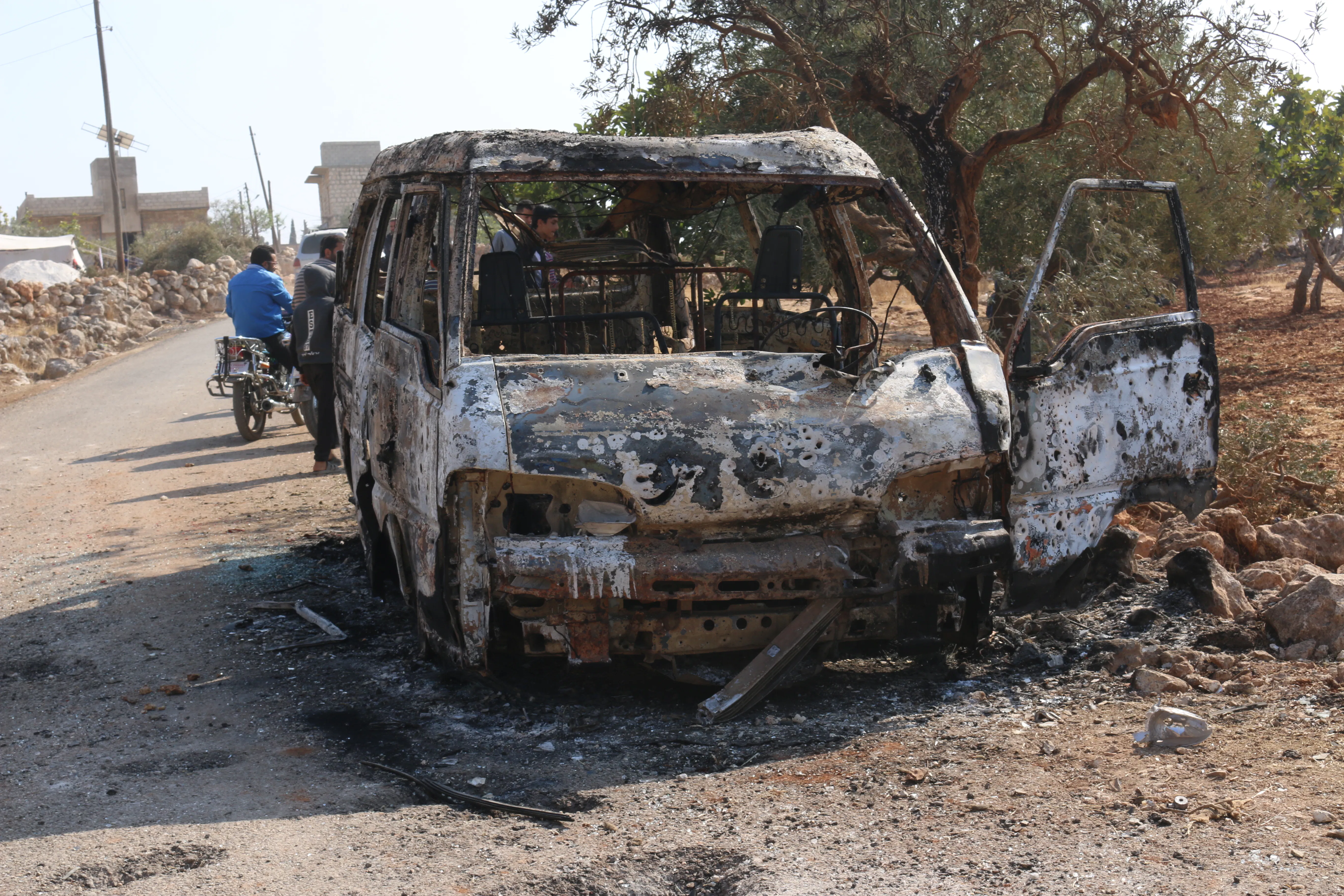Photos of burned out buildings and cars in Barisha emerged Sunday morning.