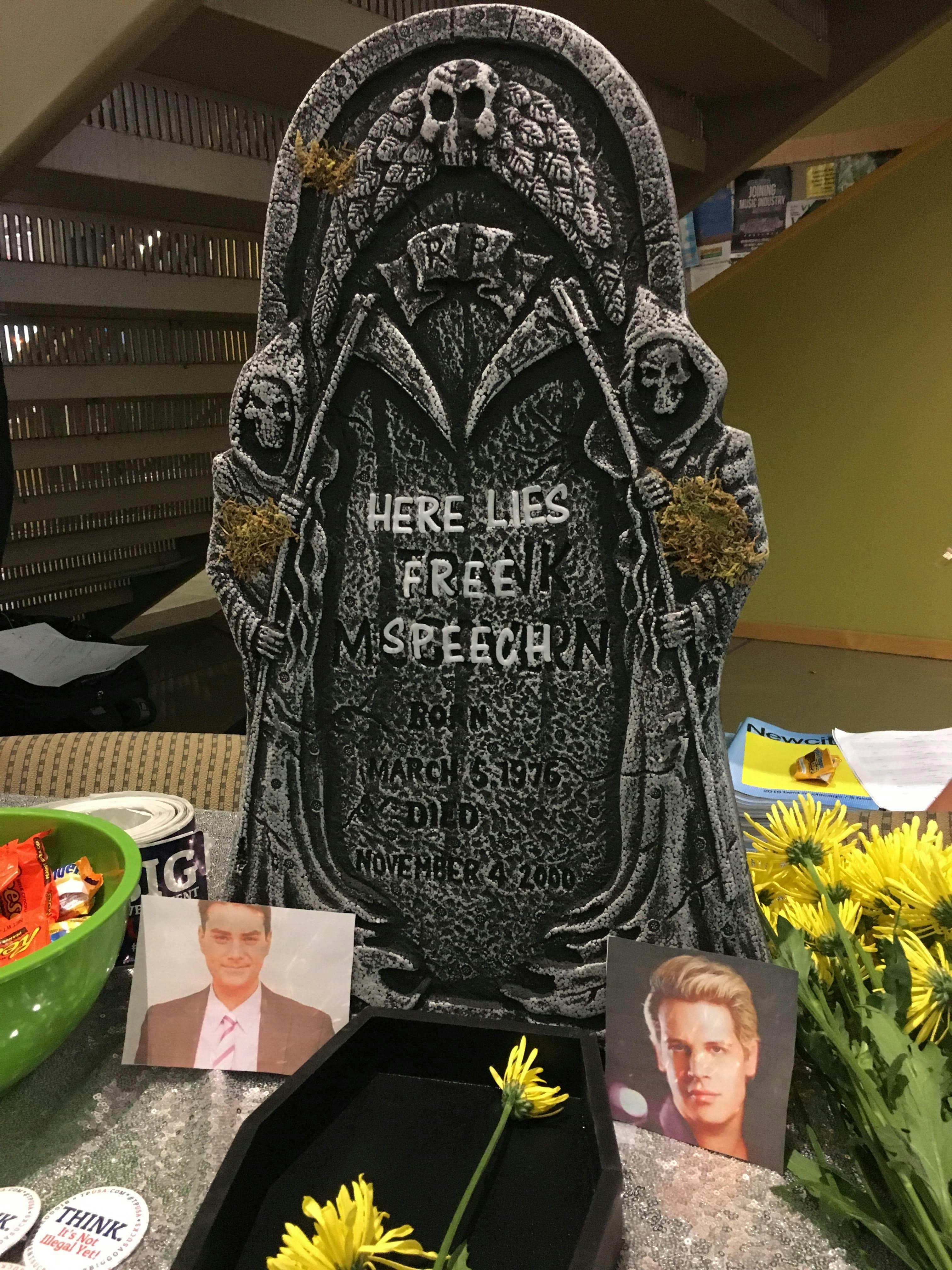 “The socialist club was almost charged $1000 to have a meeting because their views are deemed too controversial,” she said. “We had flowers laid on a mini casket and had students write notes to free speech on why they miss having it around. I wanted to raise awareness of the necessity of free speech at institutions of higher education because they only way to either solidify your views or be challenged is by allowing various viewpoints on campus.”