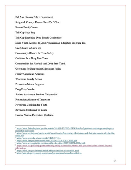 “Efforts to reschedule marijuana risk sending the wrong message — that the substance is safe — while ignoring the science and significant dangers associated with its use,” he said. “Rescheduling would only accelerate marijuana consumption, driving higher rates of substance abuse and increasing demands on already strained public safety resources and budgets. We strongly urge the Administration to reject any effort to reclassify marijuana from Schedule I to Schedule III.”