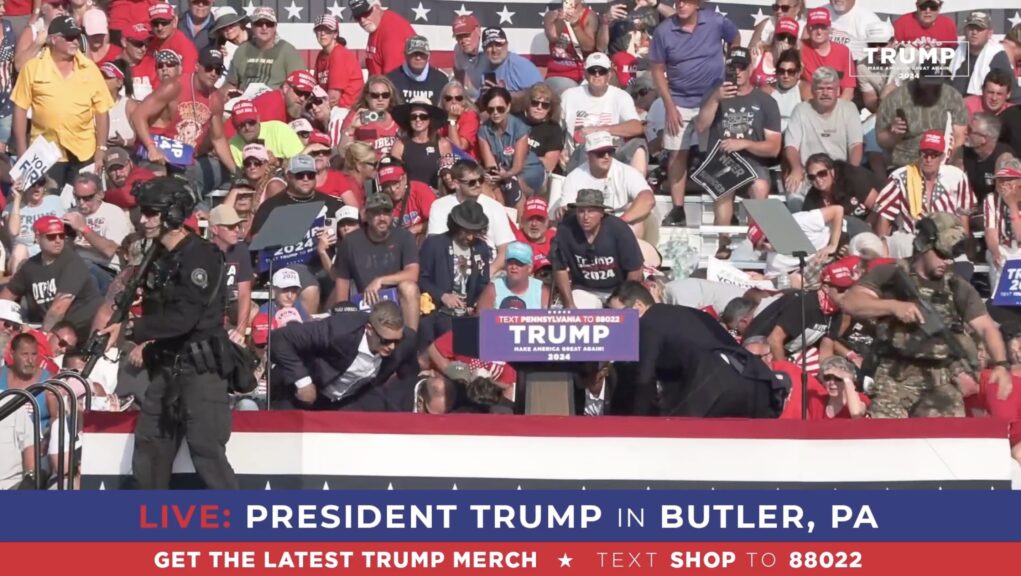 Images of that historic and tragic day show Trump speaking to the massive crowd surrounded by dozens of his supporters. Looking more closely, the “tight shot” of Trump in the moments before he got shot shows about 20 Trump supporters listening and clapping.