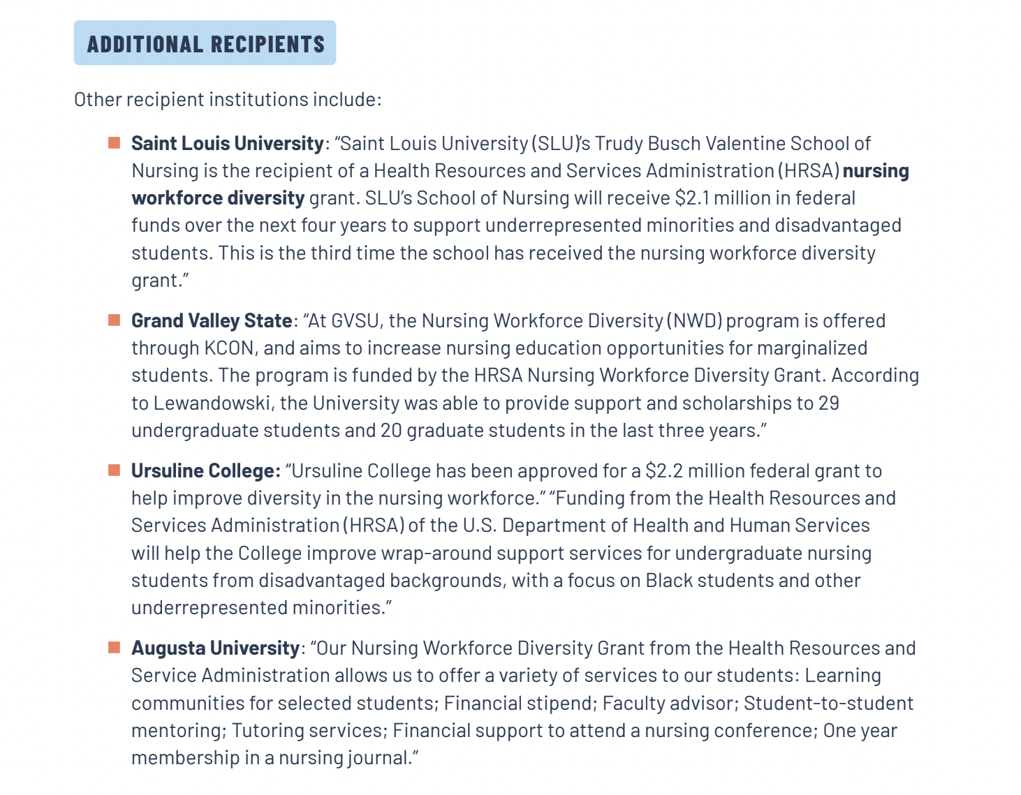HRSA funding for the Nursing Workforce Diversity Program.