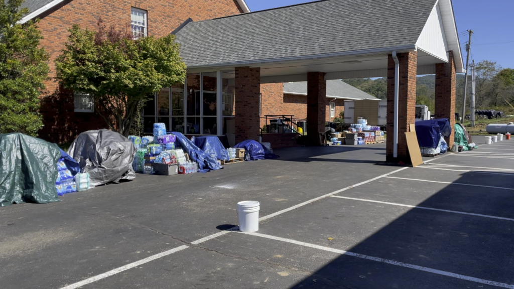 Locals compared Helene’s flooding to the flood of 1998, which caused widespread damage across the community, destroying the First Baptist Church building. After the flood, the church was rebuilt on the hill where it sits today, safe from flooding and at the center of the community’s aid efforts.