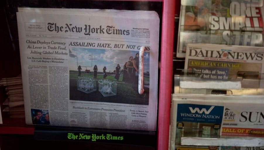 The “crisis” meeting was called in response to forceful criticism from Democratic politicans and left-wing readers over the Times’ coverage of Trump’s speech following the horrific mass shootings in El Paso and Dayton, the former by a man who espoused anti-immigrant and white supremacist ideas and the latter by a self-described leftist who had an obsession with violence. In his speech, Trump unequivocally condemned racism and called for greater national unity. “In one voice our nation must condemn racism, bigotry and white supremacy,” he said. “These sinister ideologies must be defeated. Hate has no place in America.”