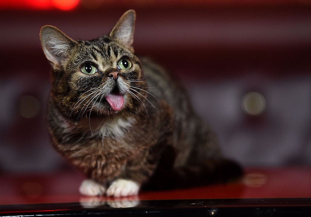 Lil Bub, who became an Internet celebrity in 2011 after her human, Mike Bridavsky, created a Tumblr blog for the little cat. Bub was born with several medical disorders, including dwarfism, a protruding tongue, and large eyes. It was her appearance that made her a meme and a celebrity, leading to product endorsements, merchandise lines, and a YouTube show.