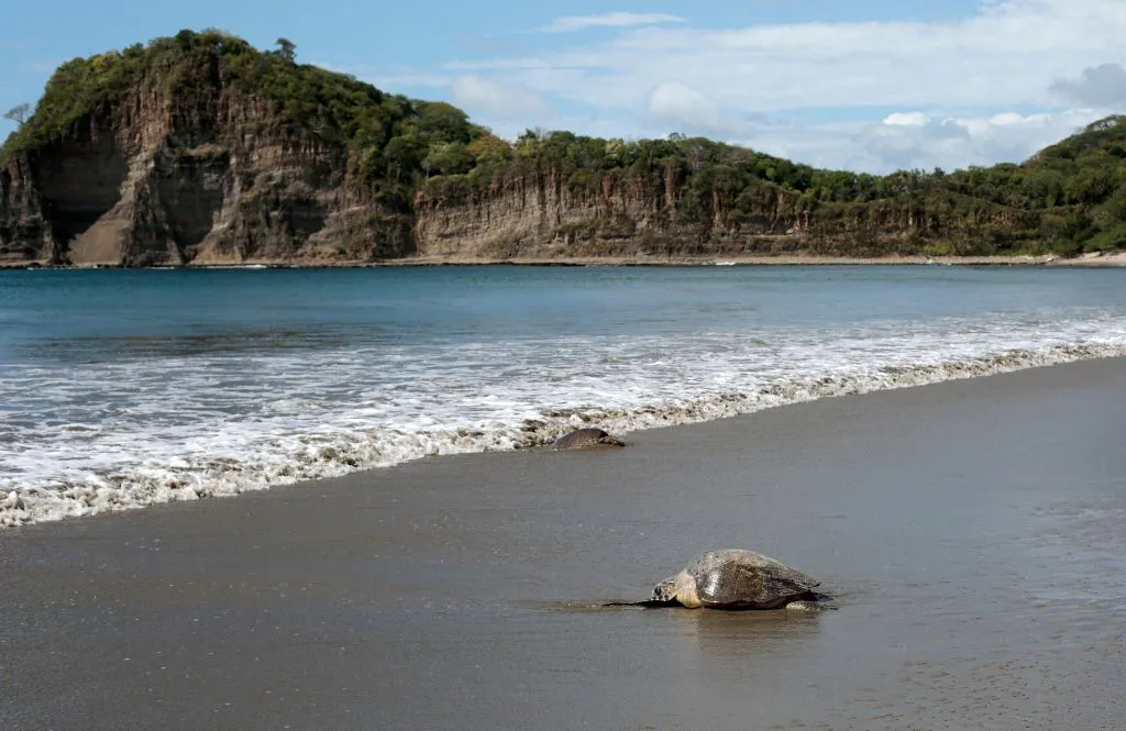 Josy Peukert, 37, gave birth to her son Bodhi on the shoreline of Playa Majagual, Nicaragua.