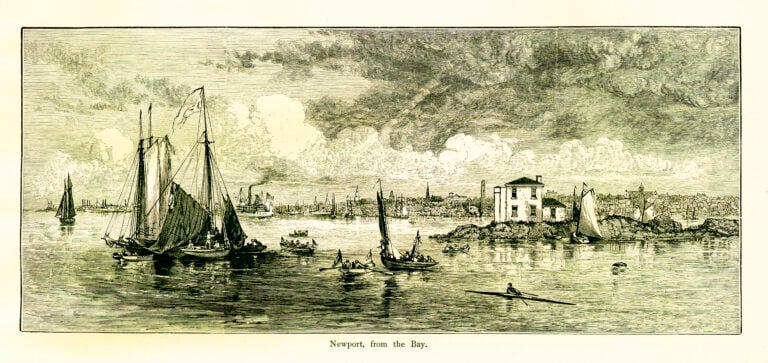 Antique illustration of Newport, a city on Aquidneck Island, Rhode Island, USA. Engraving published in Picturesque America (D. Appleton & Co., New York, 1872).