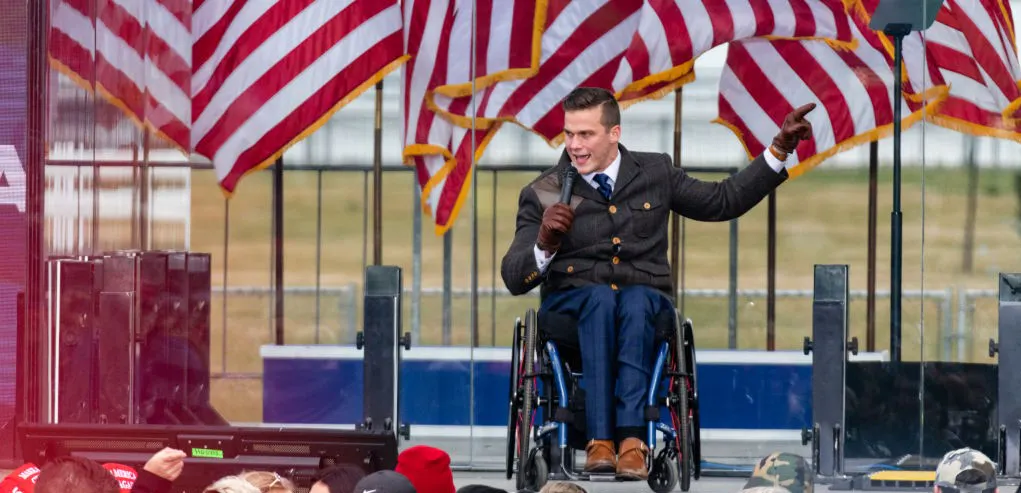 “The video shows Mr. Cawthorn, 26, in the driver’s seat of a car with his scheduler Stephen Smith, 23, who is sitting in the passenger seat with his hand in his boss’s genital area,” the Times wrote. “‘I feel the passion and desire and would like to see a naked body beneath my hands,’ Mr. Cawthorn, who uses a wheelchair because he is paraplegic, says in an embellished accent.”