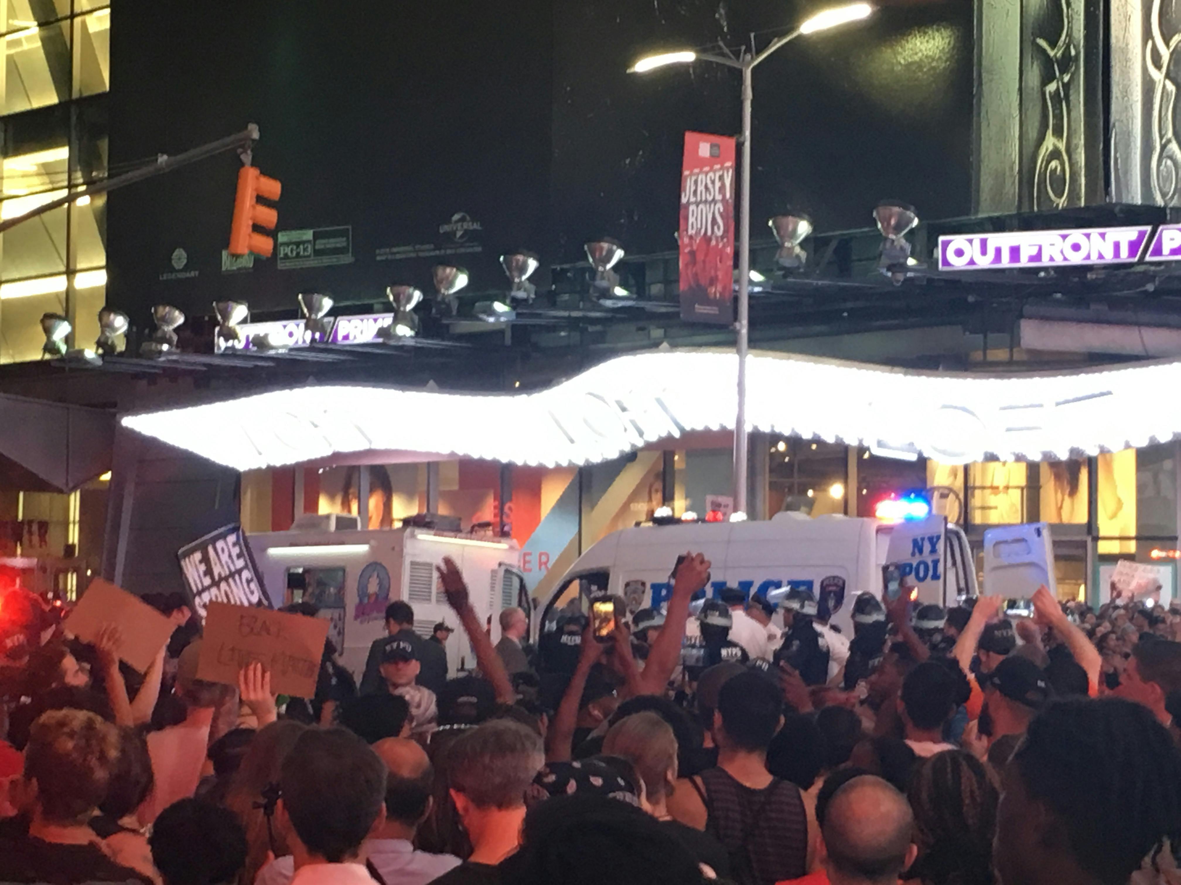 The chaotic scene continued in Times Square well until through the evening. Several protesters were arrested by the NYPD.