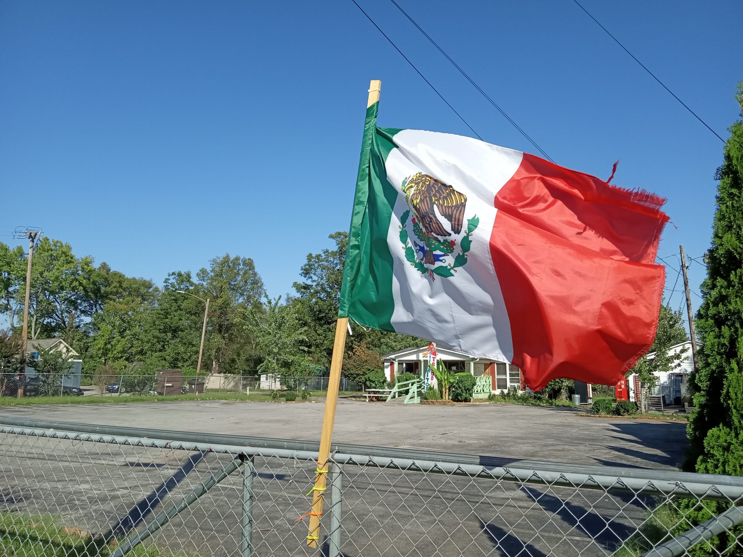 A Mexican flag flies in north Athens.