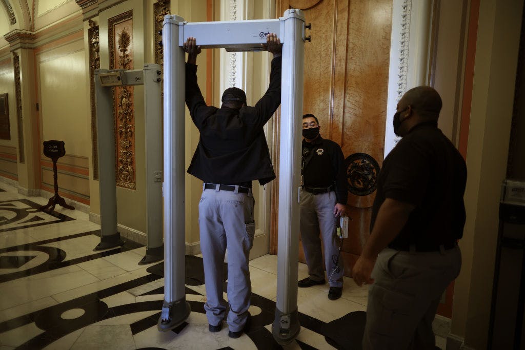 The United States Capitol installed the metal detectors just days after a violent mob attempted to overtake the building. The attack, which killed five people and wounded dozens more, resulted in more than 150 arrests so far, and more arrests — and more charges — are expected. Following the incident, Capitol Police and the Secret Service greatly increased security across the U.S. Capitol and its grounds, installing 7-foot deterrent fences, activating uniformed federal law enforcement, and installing a series of metal detectors at entrances.