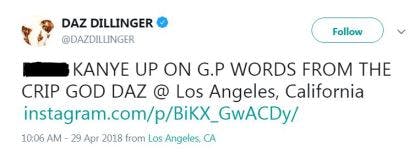 “Yo national alert, all the Crips out there, y’all f*** Kanye up,” said former Tha Dogg Pound member Daz Dillinger, in a video posted to his Instagram account which he has since removed.