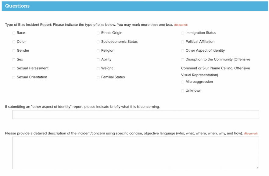 IMSA bias report form.