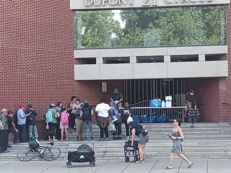 As the protest went on, an older gentleman sitting on a bench said a group that provides free meals to homeless people in DuPont Circle was forced to relocate across the street to accommodate the hundreds of demonstrators in the park. About a dozen homeless men and women gathered to receive meals there across the street from the protestors.