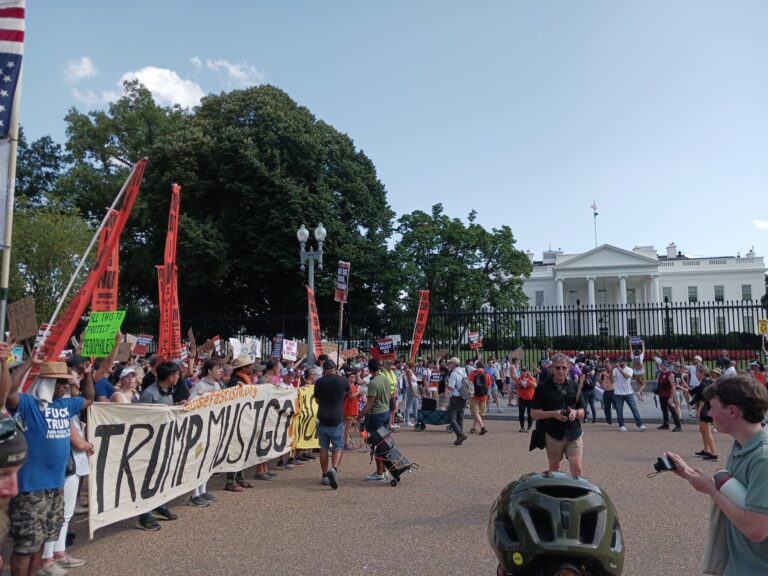 “What we see happening in front of us with a Trump fascist takeover of D.C. is launching to a whole other league of a Trump fascist takeover of society,” Sam Goldman, one of the event’s organizers, said at the opening rally.