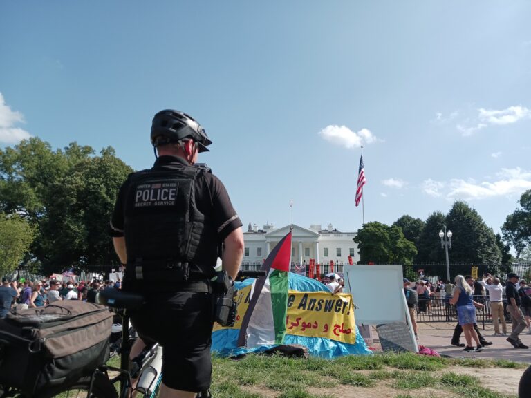 As they gathered and began chanting, D.C. police officers assembled at the outskirts of the park on bicycles and in cruisers. Once the hundreds of protestors began filing down Connecticut Avenue towards the White House, the police ensured that none of the First Amendment fighters were mowed down by the city’s notoriously bad drivers.