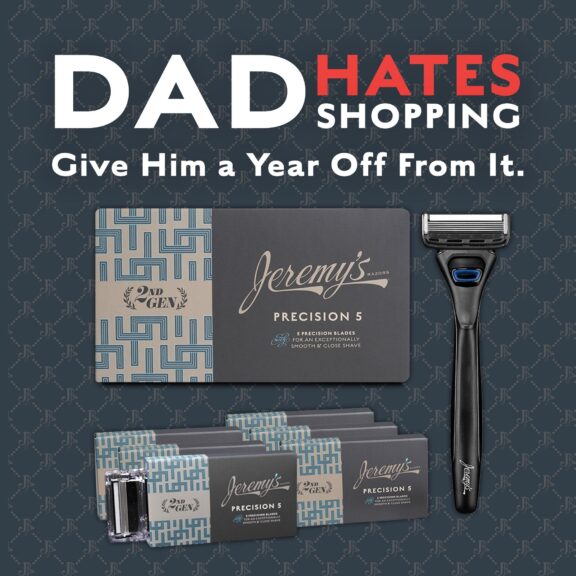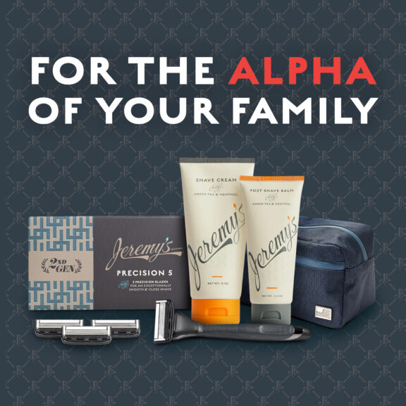 With the Jeremy’s Precision 5 Razor, rich green tea & menthol shave cream and post-shave balm, and a durable travel case, it’s everything he needs to stay sharp — wherever he goes. Honor the man who led by example.