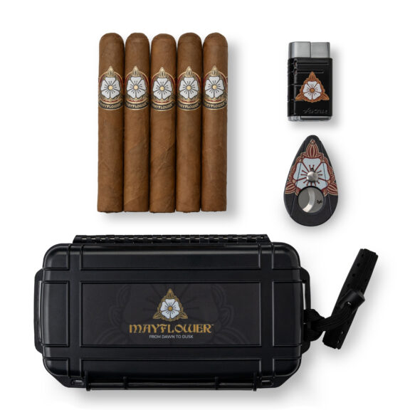 For moments steeped in intention, the Dawn Patrol bundle brings together five Mayflower Dawn Robustos, known for their notes of wood, coffee, and cream — an ideal companion to quiet sunrise reflections. Alongside a travel humidor and accompanied by the Mayflower signature XIKAR® Xi2 cutter and Linea torch lighter, this set is a gentleman’s morning ritual — refined, portable, and always ready to greet the day with grace. Usher in a new dawn of better gifts.