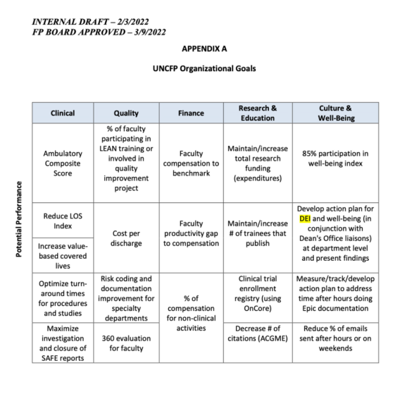 DEI is additionally baked right into the financial package that UNC Health staff receive for their work. Although 85% of a staff members’ package is guaranteed, the other 15% is contingent upon a staff member’s willingness to participate in UNC’s “organizational goals” — one of which is DEI.
