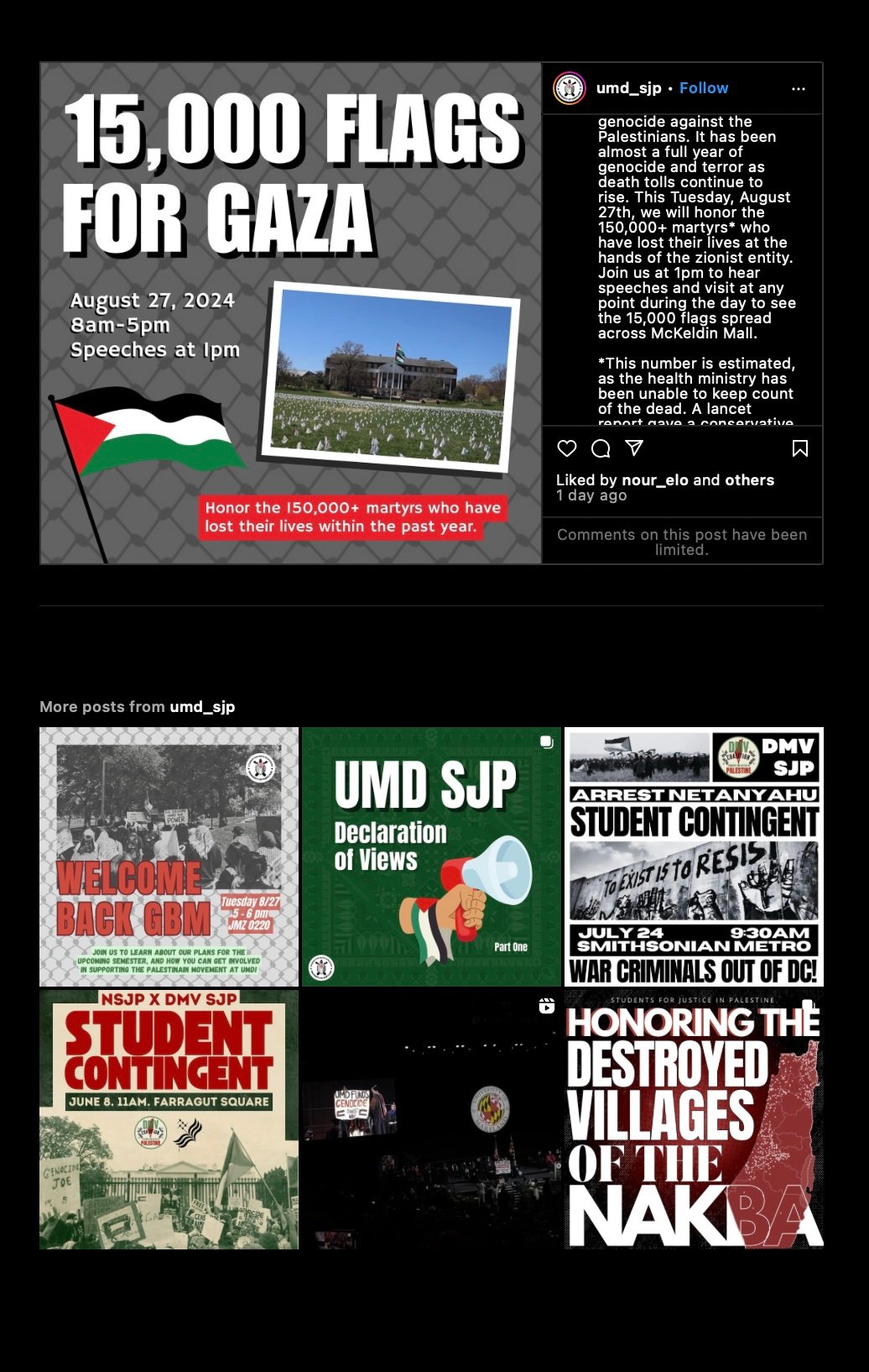 “We are approaching 11 months of genocide against the Palestinians,” the Maryland chapter of SJP said on Instagram “It has been almost a full year of genocide and terror as death tolls continue to rise.” In its declaration of views, the university’s SJP chapter “unequivocally states that the Zionist state of Israel has no right to exist.”