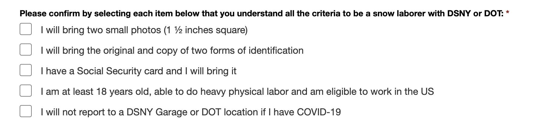 The registration form to shovel snow requires volunteers to provide multiple forms of identification: