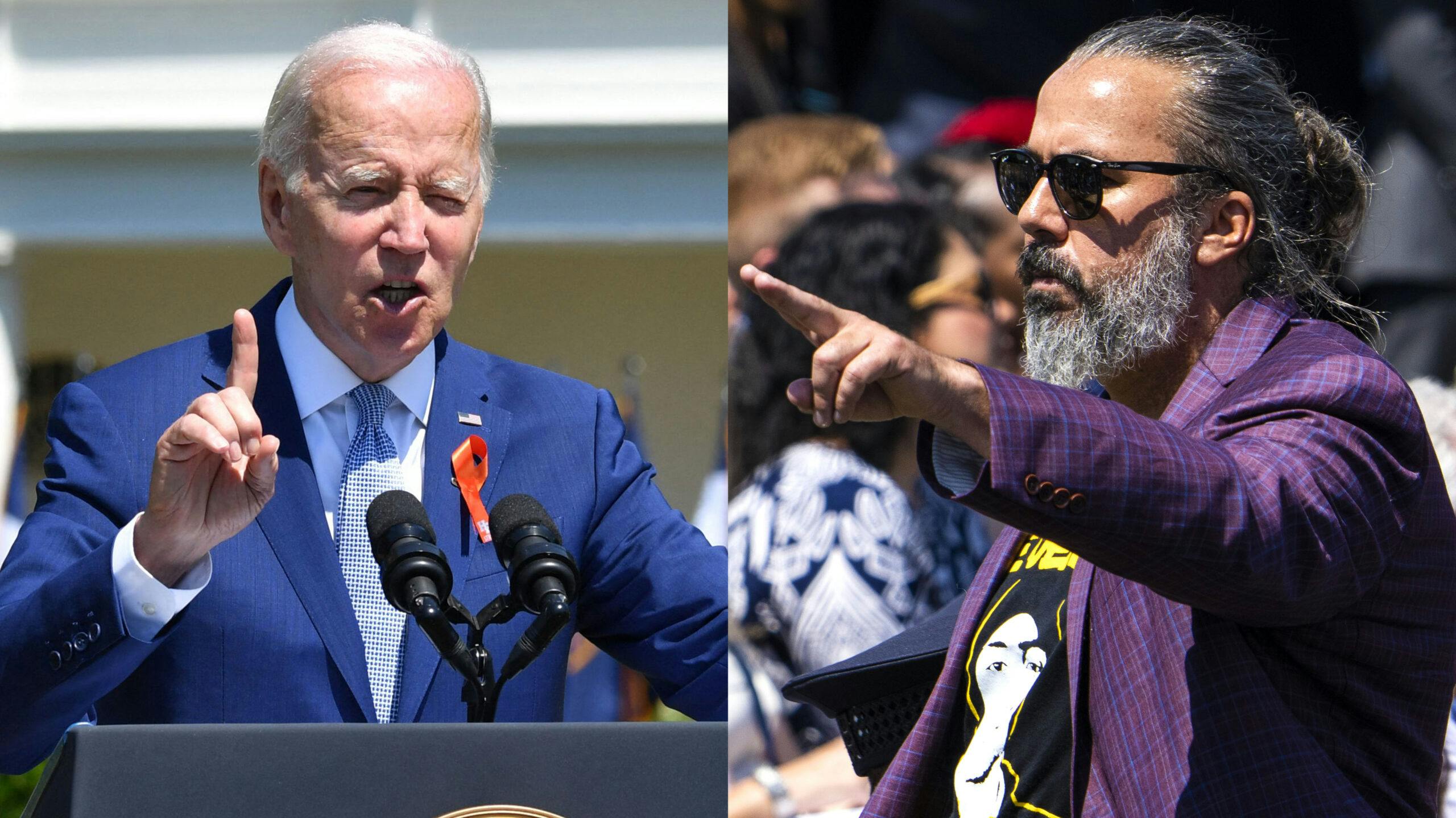 Manuel Oliver, whose son Joaquin was killed in the Parkland shooting in 2018, interrupted Biden’s remarks, yelling, “You have to do more than this!”