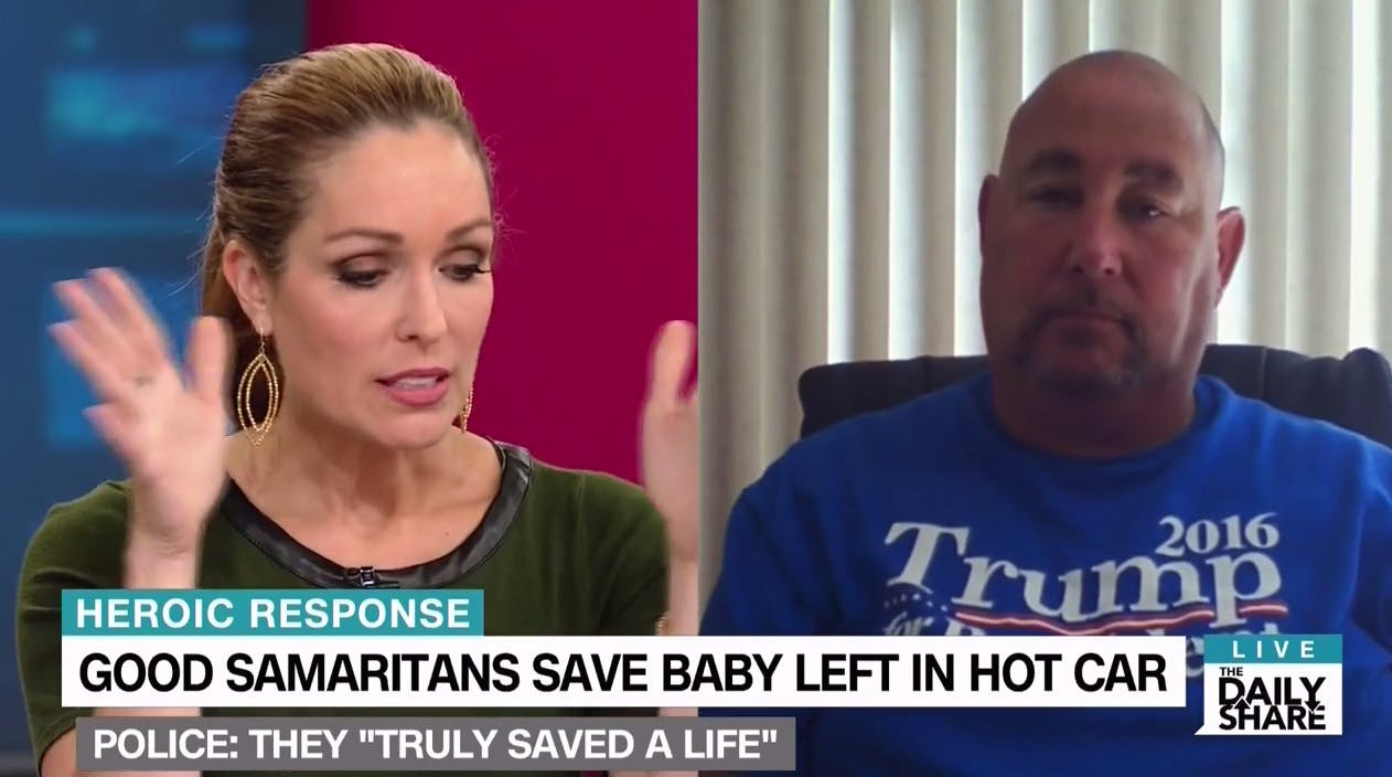 Left-wing CNN’s sister network HLN blurred out the Trump 2016 logo of a man’s t-shirt it interviewed for a human interest segment on Wednesday. The man was being interviewed for his rescuing of a baby left unattended in a hot car.