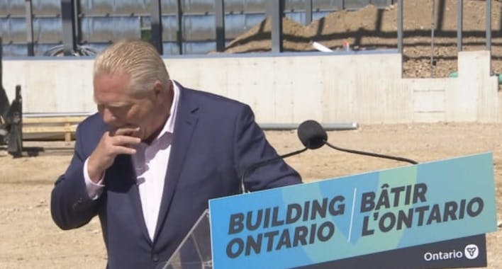 Ontario Premier Doug Ford was taking questions from reporters in Dundalk when the insect flew into his mouth and went down the hatch, according to CBC. The voluble politician laughed it off – after trying in vain to expel the honeymaker.